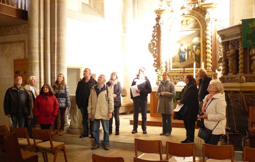 Bei angenehmem Herbstwetter besuchten wir Ende Oktober die evangelischen Kirche St. Johann Baptist, in Dortmund-Brechten. Zu Beginn der Exkursion, die von Marita Grun und Reiner Padligur, beide aus Witten, vorbreitet war, stellte uns Frau Karoline Theobald, aus Dortmund, die kultur- und kunsthistorischen Besonderheiten der Kirche vor. Nach der sehr umfangreichen und anschaulichen Führung blieb noch Zeit für eigene Erkundungen in der Kirche. Bevor wir zum Abschluss der Exkursion wieder in eine Gastronomie einkehrten besuchten wir noch in der Nähe ein Waldgebiet mit Quellen, Bächen und interessanten Bäumen (und Pilzen).