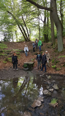 Bei angenehmem Frühsommerwetter fand Ende April unser Praxistag statt. Zu der Exkursion, die von Reiner Padligur vorbereitet war, untersuchten wir einige Quellen und einen Blitzbaum im Wodental bei Hattingen. Mit guter Stimmung und mit viel Elan haben wir mit insgesamt 9 Teilnehmern gemeinsam die Orte erkundet (siehe Fotos). Anschließend kehrten wir vor Ort wieder in gemütlicher Runde in ein Bauernhofcafe ein.