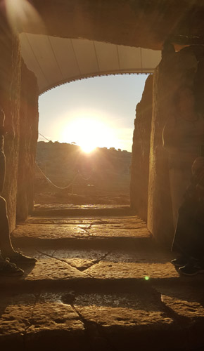 Bei unserem 2. Vortrag hatte uns Reiner Padligur, aus Witten, etwas zum Thema "Malta eine geomantische Reise" von seinen Reiseerlebnissen auf Malta erzählt. Die Megaltithanlagen auf Malta sind mit Ihrem Alter von teilweise über 5.500 Jahren älter als die Pyramiden und zählen zu den ältesten Megalithenanlagen Europas. An diesem Abend stellte er unter anderem seine geomantischen und radiästhetischen Erkundungen der TempelanlagenHagar Quim, Mnajdra, Ggantija, Tarxien und das Hypogäum, vor. Dabei schilderte er auch seine Eindrücke vom Sonnenaufgang zur Tag-/Nachtgleiche (Äquinox) in der Tempelanlage von Mnajdra (siehe Bild).