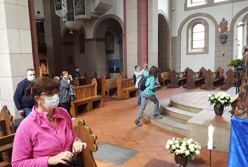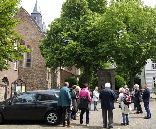 Dank der ersten Lockerungen der Kontaktbeschränkungen in NRW konnten wir aber die geplante Exkursion durchführen. Die Exkursion war auch dank einiger neuen Teilnehmer mit 14 Teilnehmer*innen sehr gut besucht. Die von Astrid Thorausch, aus Mülheim vorbereitet Exkursion ging zum Kloster Saarn, zur Kirche St. Laurentius und den Schloßpark Landsberg. Bereits seit dem 13. Jahrhundert sind das ehemalige Zisterzienserinnenkloster in Mülheim-Saarn, die Kirche St. Laurentius, in Essen-Mintard und das Schloß Landsberg, in Ratingen, im unteren Ruhrtal belegt. Statt einer anschließenden gemeinsamen Einkehr, die coronabedingt leider nicht möglich war, machten wir im Park vom Schloß Landsberg dann zum Abschluss ein gemütliches Picknick. Bei schönstem Sonnenwetter hatte dann die gemütlicher Abschlussrunde auch länger gedauert als sonst üblich.