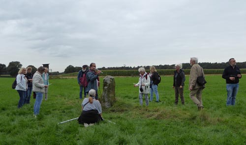 Der Praxistag im September war diesmal vorbereitet von Reiner Padligur, aus Witten. Diesmal geht es nach Haltern am See in die Hohe Mark und dort zuerst zu einem historischen Grenzstein aus dem 16. Jahrhundert zwischen Dorsten/Wulfen und Haltern. Danach zur St.Anna-Kapelle und dem Ludgerus-Brunnen bei Haltern-Tannenberg (T´Annenberg = Der Alte Annaberg), die wir bereits einmal vor vielen Jahren besucht hatten, aber für viele neue Mitglieder nun doch ein neues Erlebnis war. Bei angenehmen Herbstwetter hatten wir mit 15 Personen eine recht große Gruppe, die dann sehr intensiv die verschiedenen Orte rädiästhetisch untersucht hatten.